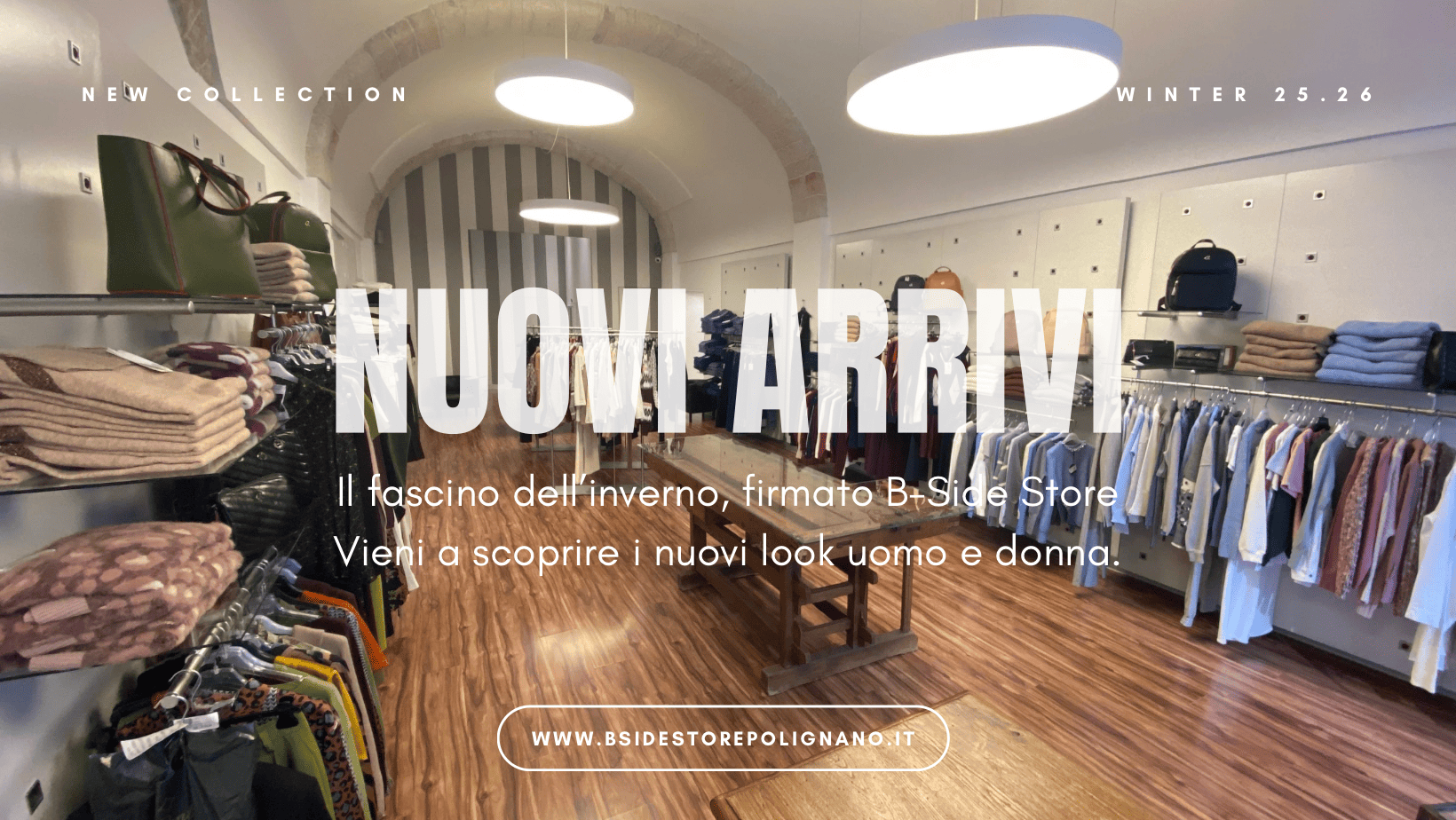 Oggi B-Side Store è considerato un punto di riferimento dell’abbigliamento nell’hinterland barese, con 3 grandi spazi, uno dedicato interamente alla donna e l’altro all’uomo ed il terzo alla cerimonia, dove poter vivere un’ esperienza di shopping unica ed emozionante.